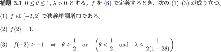 で狭義単調増加である。 (2) は単純な計算で分かる。 (3) については、